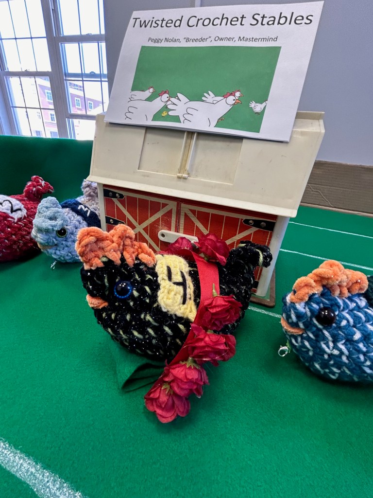 Huge shout out to Blue Seal in Derry, NH for ordering over 20 crocheted chickens! Be sure to check out the racing chickens for Derby Day on May 4, 2024!